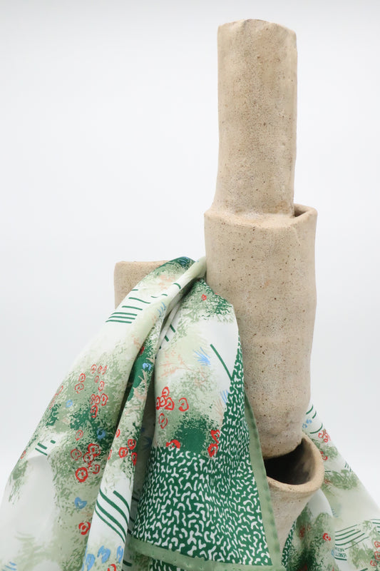 Sold outGreen Patterned Silk Blend Scarf